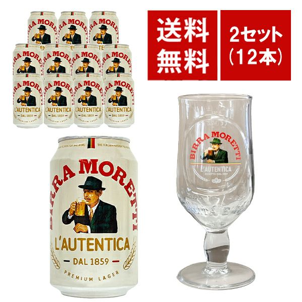 モレッティ・ビール・330ml缶・6缶パック×2セット!今ならモレッティオリジナルグラス2脚付き!