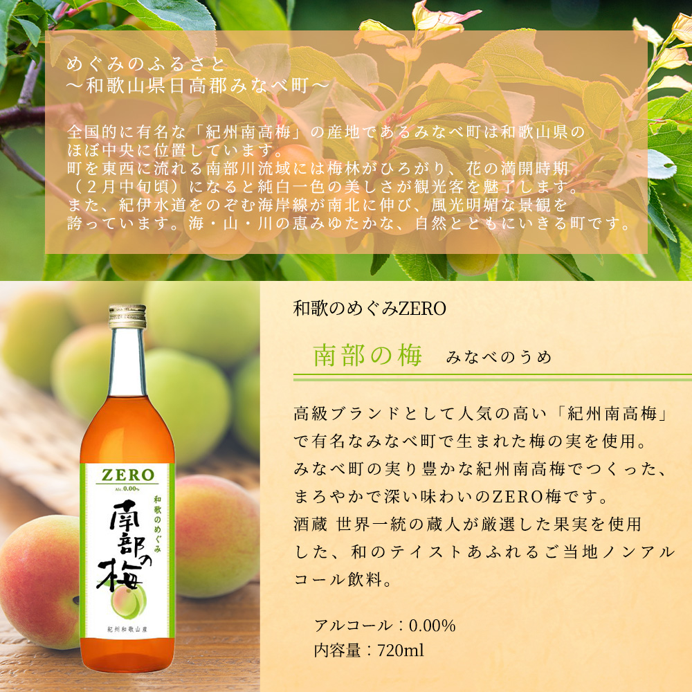 世界一統・和歌のめぐみ・ZERO・南部の梅・ノンアルコール・0.00%・日本・和歌山・720ml