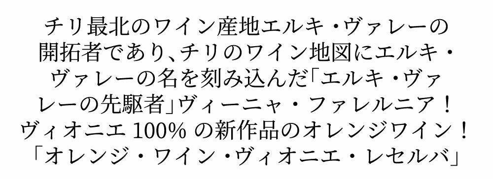 他の画像を見る ビーニャ ファレルニア オレンジワイン ヴィオニエ レセルバ 2024 チリ エルキヴァレー ヴィーニャ ファレルニア元詰 チリワイン ヴィオニエ100%のオレンジワインVINA FALERNIA Orange Wine Viognier Reserva 2024 ELQUI Valley オレンジ チリ 辛口 当店特別価格 ¥ 1,337 税込 カートに入れる お気に入りに登録する