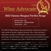 パヴィヨン・ルージュ・デュ・シャトー・マルゴー[2022]年・メドック・プルミエ・グラン・クリュ・クラッセ・格付第一級・ シャトー・マルゴーのセカンドラベル・AOCマルゴー・アドヴォケイト誌1stで驚異の96-97点・この2ndでさえ92-94点・ジェームス・サックリング94-95点