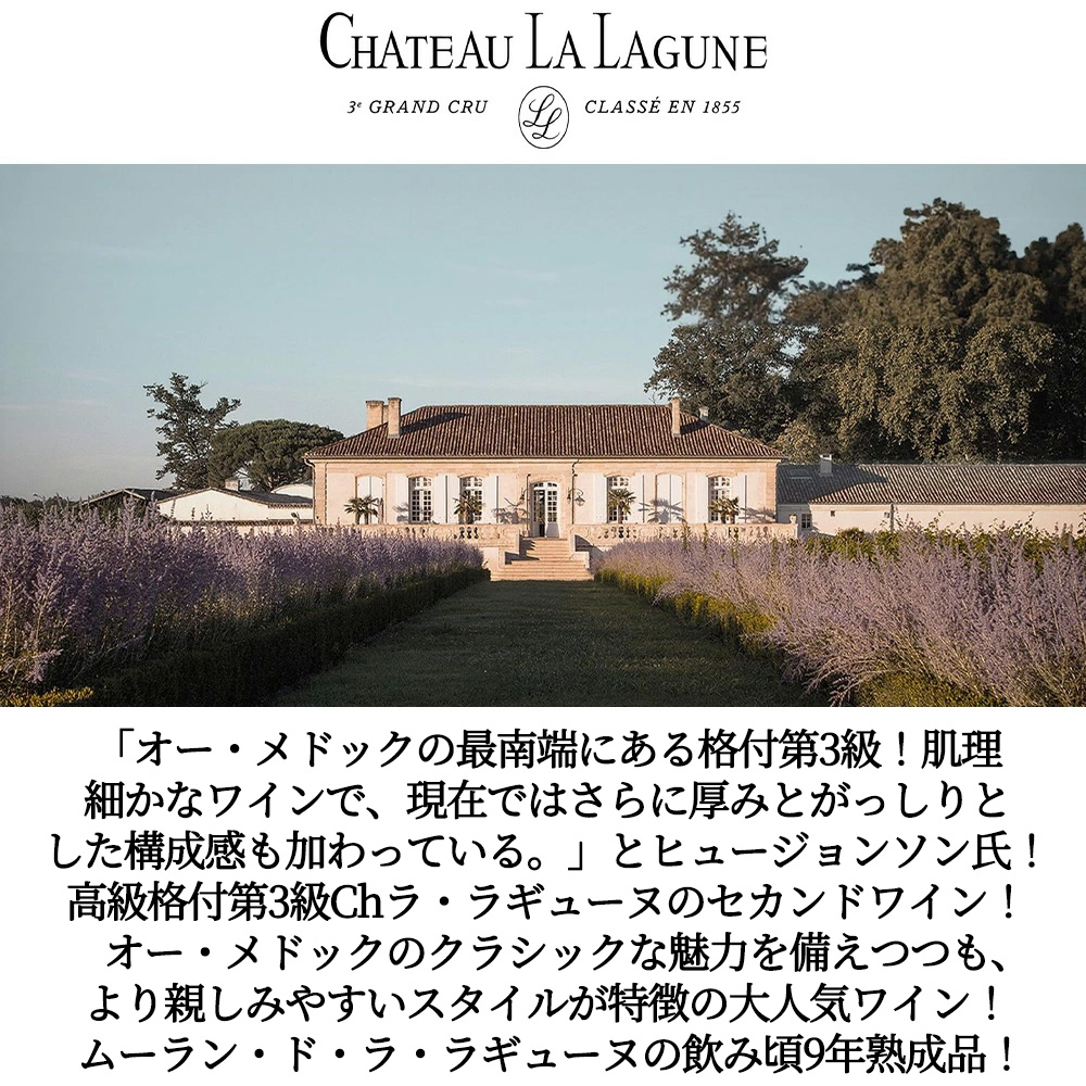 高級格付第3級シャトー・ラ・ラギューヌのセカンドワイン“ムーラン・ド・ラ・ラギューヌ”の飲み頃7年熟成バックヴィンテージの偉大ヴィンテージ[2019]年ものが待望入荷!