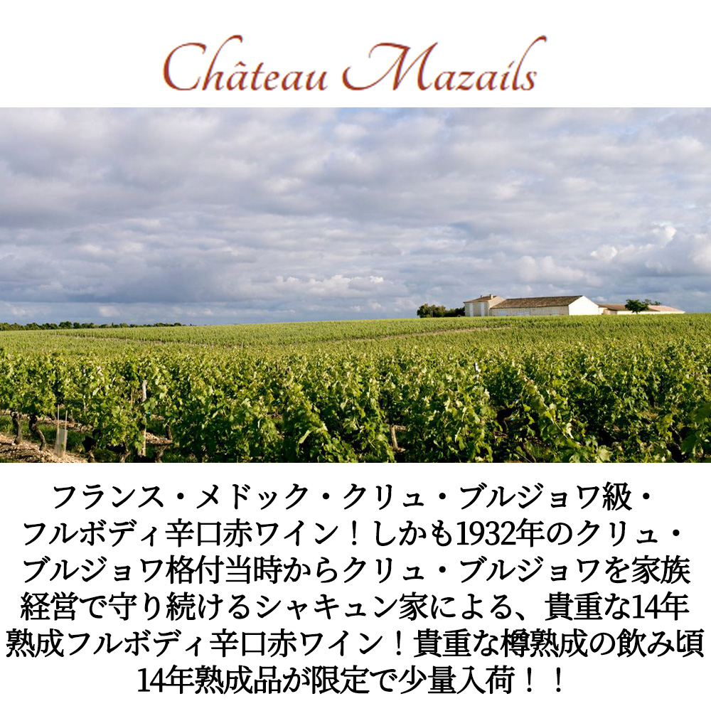 シャトー・マザイル・メドック・クリュ・ブルジョワ[2012]年・シャトー元詰・AOCメドック・クリュ・ブルジョワ・オーク樽で12ヶ月間熟成・14年熟成作品!