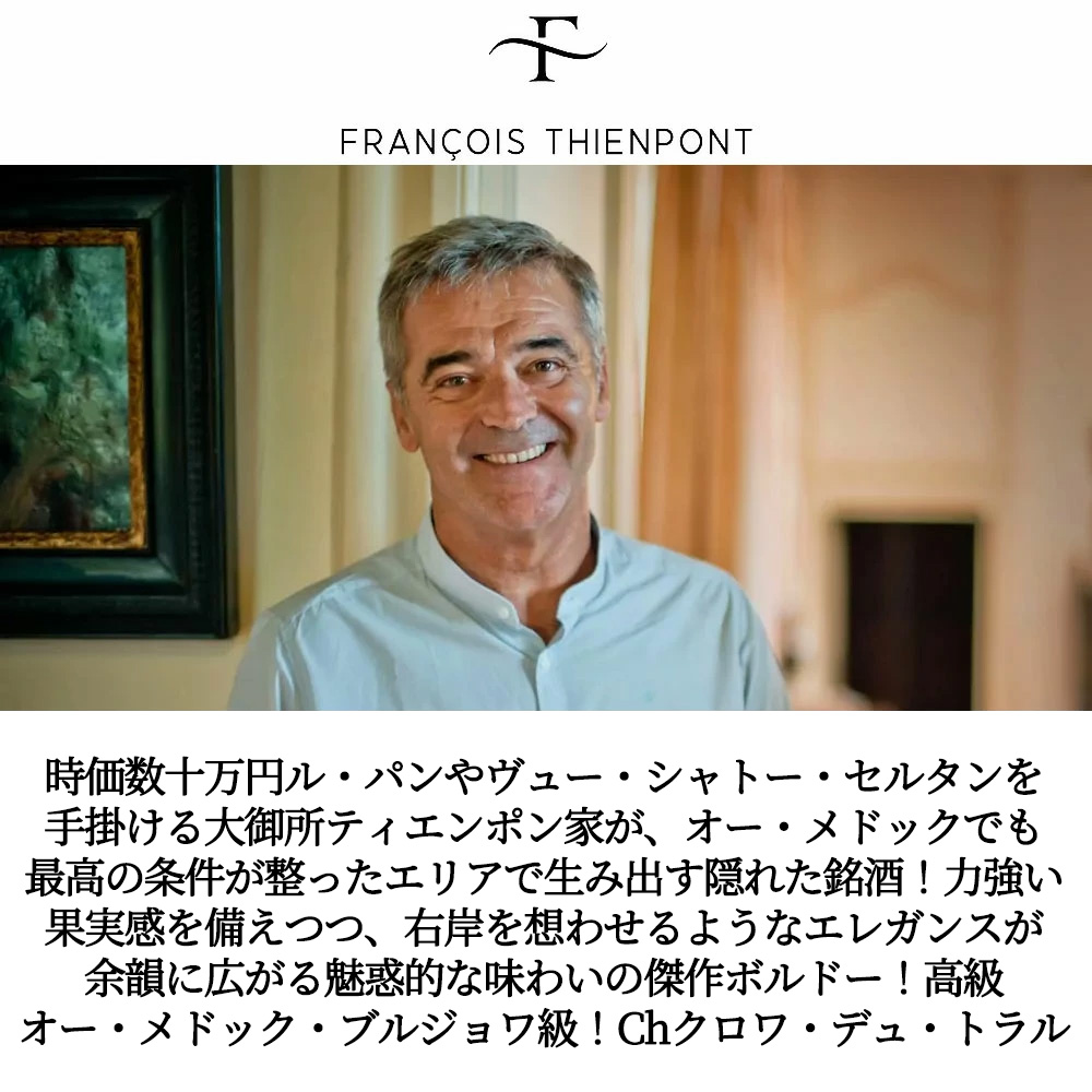 シャトー・クロワ・デュ・トラル[2018]年・ティエンポン・ファミリー・AOCオー・メドック・クリュ・ブルジョワ級・飲み頃8年熟成・赤・辛口・フルボディ・アルコール度数14.5%