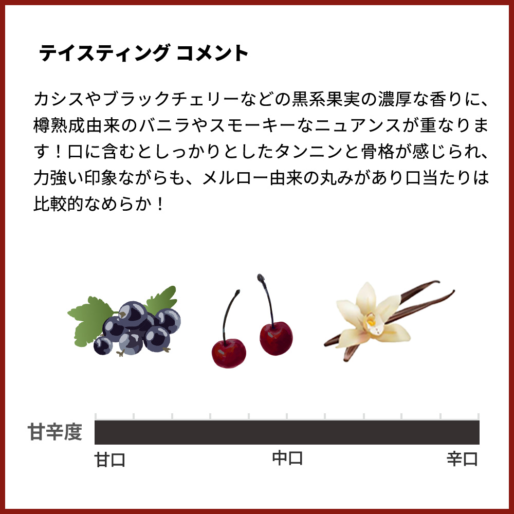 - ブドウ品種カベルネ・ソーヴィニヨン60%、メルロー40%