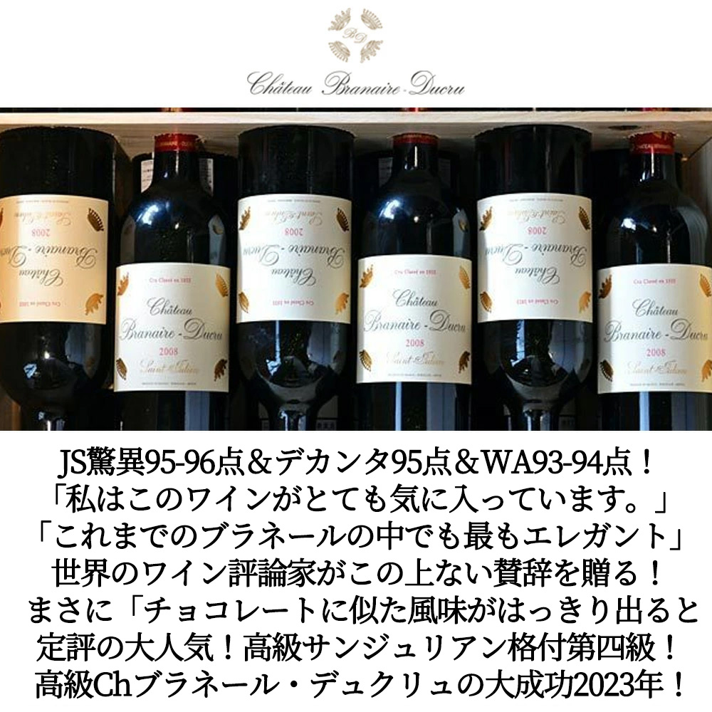 シャトー・ブラネール・デュクリュ[2023]年・メドック・グラン・クリュ・クラッセ・公式格付第四級・AOCサン・ジュリアン・ジェームス・サックリング95-96点&デカンタ95点&ワインアドヴォケイト93-94点&ヴィノス92-94点