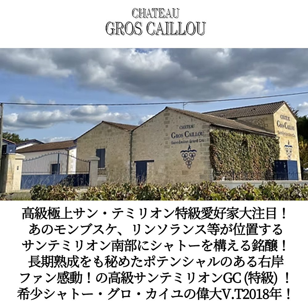 シャトー・グロ・カイユ[2018]年・サンテミリオン・グラン・クリュ・特級(現当主で7代目のエリック・デュピュイ家)・自然派・リュットレゾネ(認証なし)・ジェームス・サックリング92-93点&ヴィノス誌88-90点
