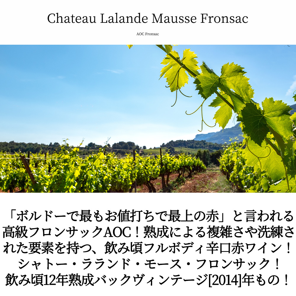 シャトー・ラランド・モース・フロンサック[2014]年・AOCフロンサック・12年熟成品・赤・フルボディ・辛口・750ml・ワイン・チャレンジ・インターナショナル金賞受賞