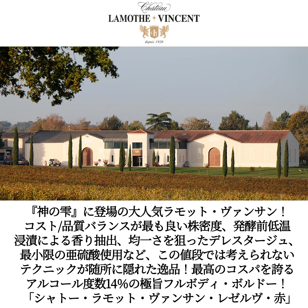 シャトー・ラモット・ヴァンサン・レゼルヴ・赤[2023]年・ヴァンサン家元詰・AOCボルドー・赤・辛口・フルボディ・750ml・アルコール度数14%