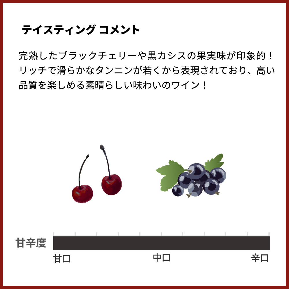 - ブドウ品種メルロー80%、カベルネ・フラン12%、カベルネ・ソーヴィニヨン8%