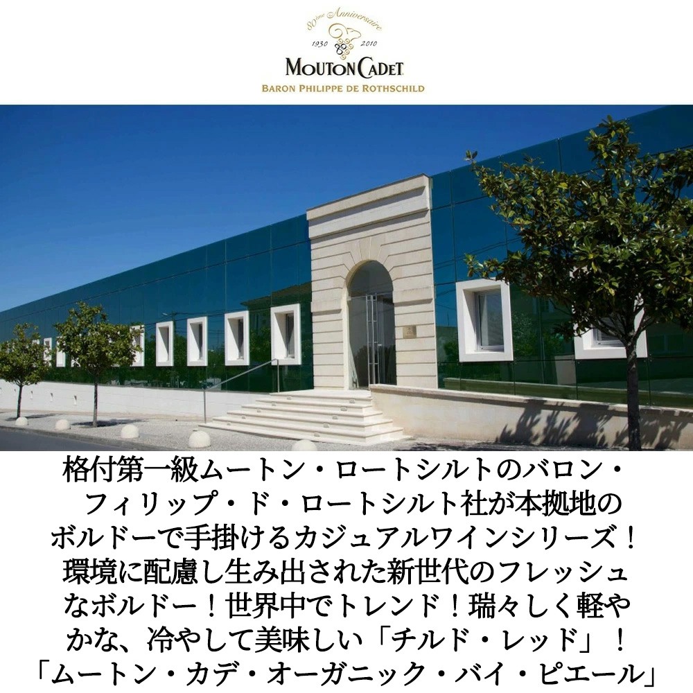 ムートン・カデ・ルージュ・オーガニック・バイ・ピエール[2024]年・バロン・フィリップ・ド・ロートシルト社・AOCボルドー・メルロ100%・オーガニック認証&ヴィーガン認証