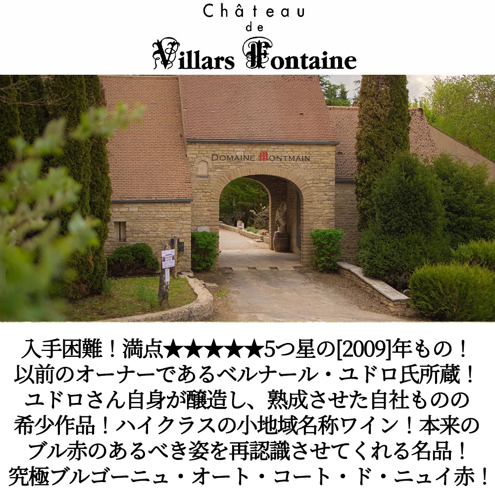 ブルゴーニュ・オート・コート・ド・ニュイ“ル・オー・デュ・ヴィラージュ”[2009]年・蔵出し限定秘蔵品・オーク樽30ヶ月熟成(新樽3分の1)・シャトー・ド・ヴィラール・フォンテーヌ元詰・AOCブルゴーニュ・オート・コート・ド・ニュイ・16年熟成品