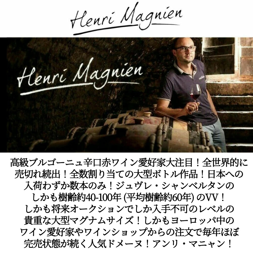 超入手困難!日本市場への入荷数本のみ!人気爆発急上昇中!各ワイン誌大注目!高級ブルゴーニュ辛口赤ワイン愛好家大注目!今、人気急上昇中のドメーヌ・アンリ・マニャンの超限定のジュヴレ・シャンベルタンのVV[2023]年マグナムサイズ大型ボトルがついに入荷!しかも非常に人気で高評価のグレイトヴィンテージ2023年で遂に待望の少量入荷!