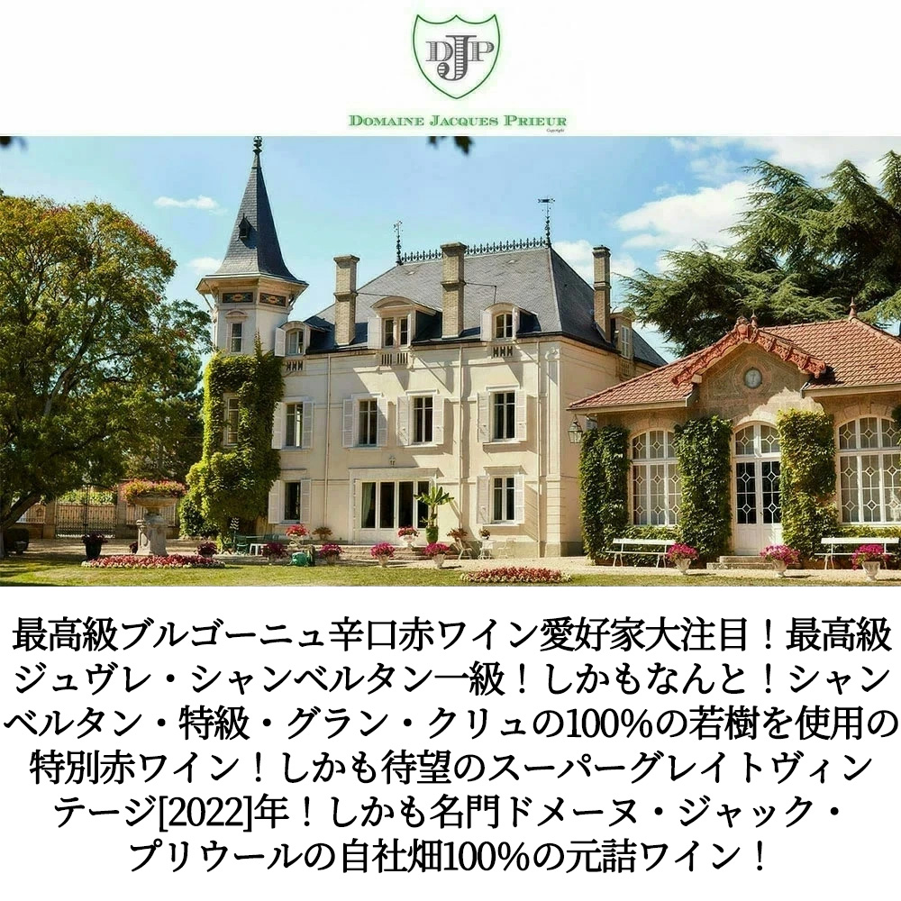 ジュヴレ・シャンベルタン・プルミエ・クリュ・一級[2022]年・蔵出し限定作品・ドメーヌ・ジャック・プリウール元詰・(オーク樽発酵&オーク樽19カ月熟成)・究極シャンベルタン・グラン・クリュ・特級の葡萄(若樹)を使用・アランメドゥ・バーガウンド驚異の90-93点(ハートマーク付&Outstandingコメント付)&ワインスペクテイター誌驚異の95点