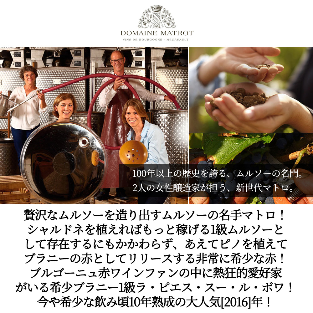 ブラニー・プルミエ・クリュ・一級・“ラ・ピエス・スー・ル・ボワ”[2016]年・ドメーヌ・(ティエリー&パスカル)・マトロ元詰・AOCブラニー・プルミエ・クリュ・一級・正規品・飲み頃10年熟成バックヴィンテージ作品