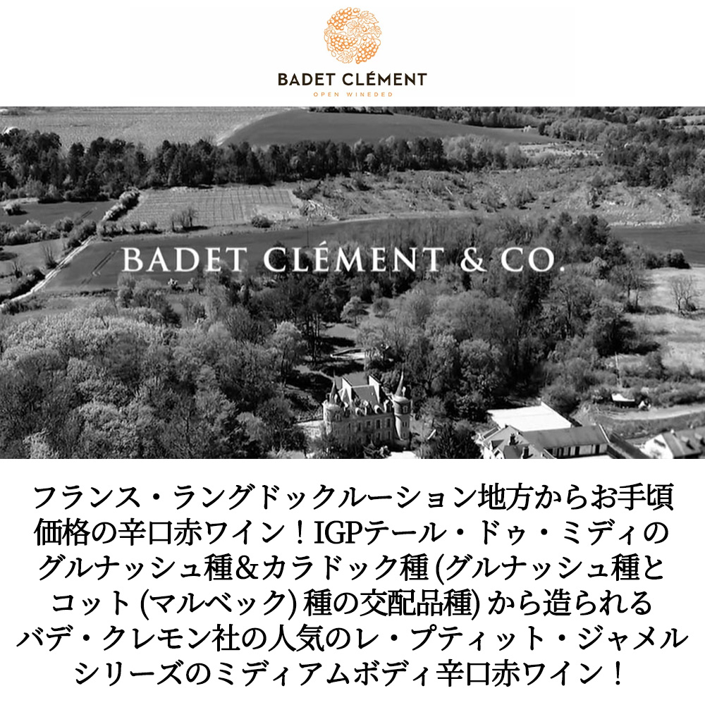 レ・プティット・ジャメル・ルージュ[2024]年・バデ・クレモン社・フランス・ラングドックルーション・IGPテール・ドゥ・ミディ・グルナッシュ種&カラドック種・(100個の金メダル受賞歴をもつラングドック地方随一のブランド)・HVE3認証を取得