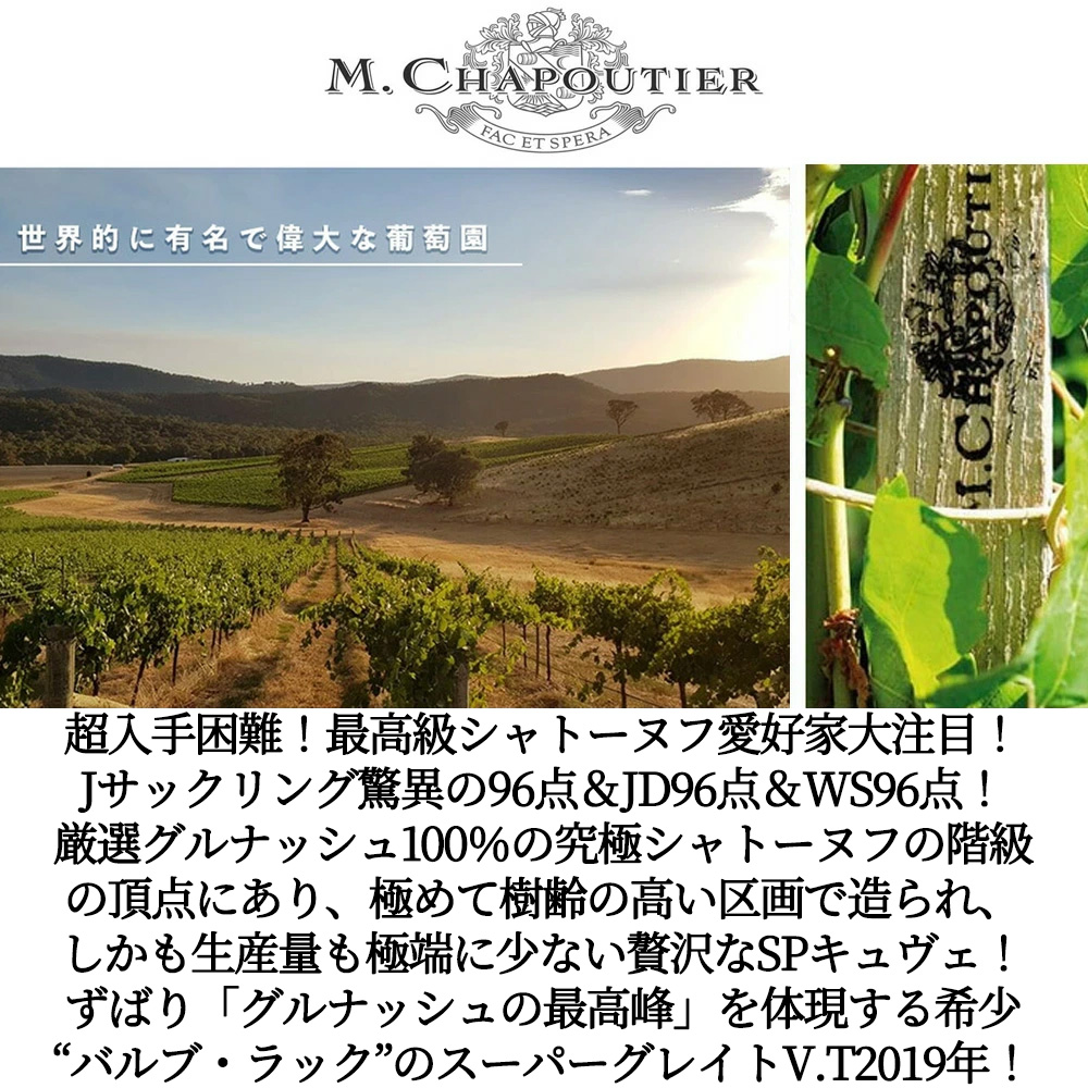 超入手困難!フランス・ローヌ最高峰ワインのひとつ!最高級シャトーヌフ・デュ・パプ愛好家大注目!シャプティエ愛好家大注目! 愛好家待望の超グレートヴィンテージ[2019]年(ワインアドヴォケイト誌もシャトーヌフ・デュ・パプに驚異の96点を付けるスーパーグレイトヴィンテージ)が遂に極少量入荷!