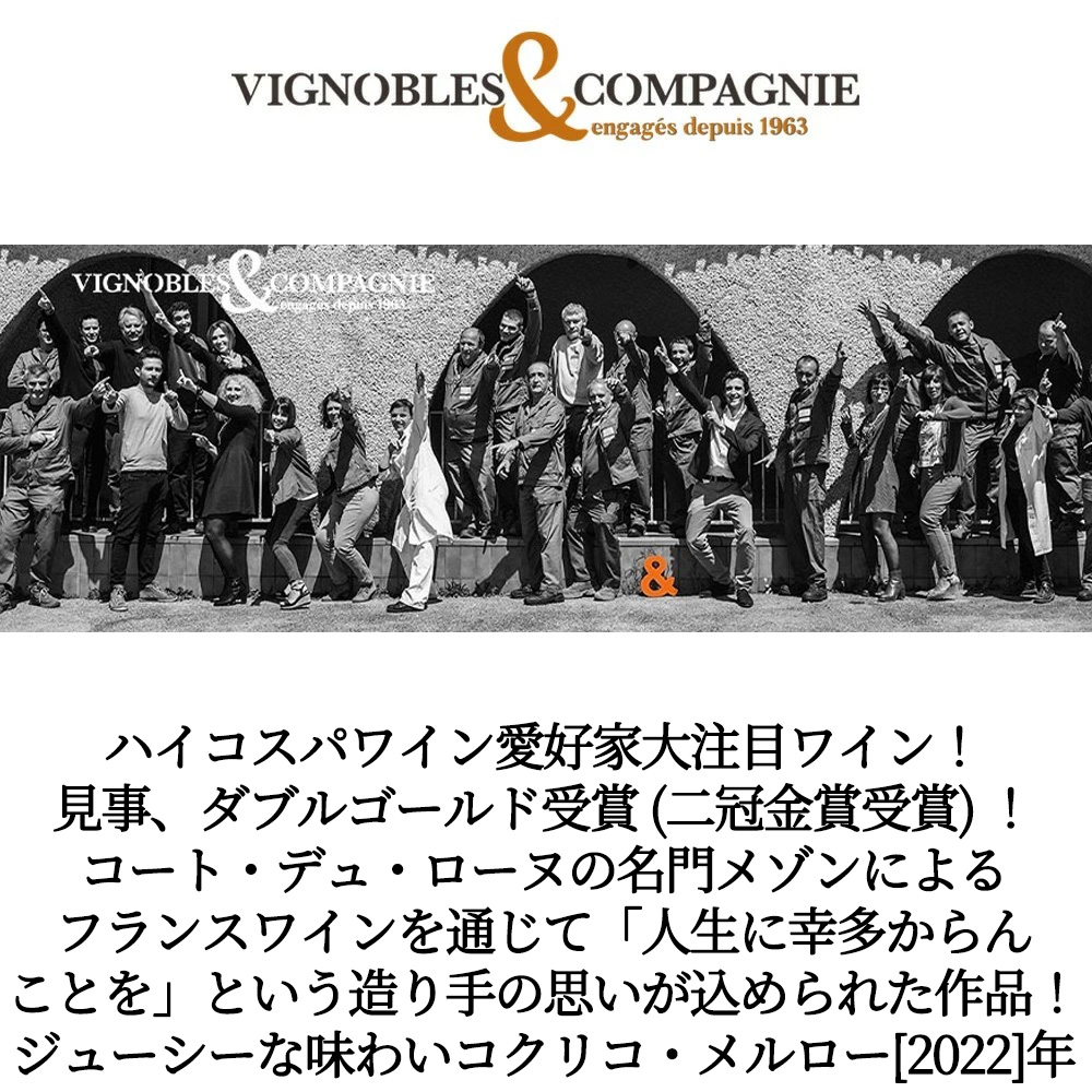 コクリコ・メルロー[2022]年・ヴィニョーブル・エ・コンパニー・ヴァン・ド・フランス・ジルベール&ガイヤール2023金賞・70 ミリオン・ド・デギュスタトゥール2023金賞受賞のダブルゴールド受賞酒・14%