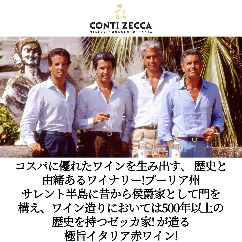 濃厚イタリア辛口赤ワイン愛好家大注目!樽熟成の濃厚カベルネ・ソーヴィニヨンが遂に登場!しかも新樽100%の贅沢仕様!南イタリアならではの土着品種の魅力を最大限に生かし、コストパフォーマンスに優れたワインを生み出す、歴史と由緒あるワイナリー!プーリア州サレント半島に昔から侯爵家として門を構え、ワイン造りにおいては500年以上の歴史を持つゼッカ家!現在のワイナリーは現当主の祖父アルチビアテ・ゼッカ氏によって1935年設立、この地ならではの土着品種の個性を最大限にいかしたワイン造りを行っていますが国際品種にも近年積極的に取り組んでいる!広大な自社畑で出来た高品質なブドウは、プーリアでもトップ・クラスと評されるワインを生み出し、多くのファンを魅了!さらにはプーリア州でガンベロ・ロッソ誌でトレ・ビッキエーリを10回獲得した数少ないスターワイナリーとして知られており、イタリア国内に限らず海外でも大注目の大御所生産者コンティ・ゼッカによる濃厚カベルネ・ソーヴィニヨンが遂に登場!カベルネ・ソーヴィニヨン85%にネグロアマーロ15%をアメリカンオーク樽にて3ヶ月熟成!しかも新樽100%の贅沢仕様!しっかりとした、濃いルビー色!熟した赤果実のニュアンスとバニラやスパイスの香り!豊かな果実味、樽の風味、タンニンが柔らかく余韻とともに心地よく広がる究極辛口フルボディ赤ワイン!リッチな樽感が楽しめる圧倒的なコスパを誇る極旨イタリア赤ワインが待望入荷!しかも高級感のあるブラックラベルでレストラン様にもおすすめ!