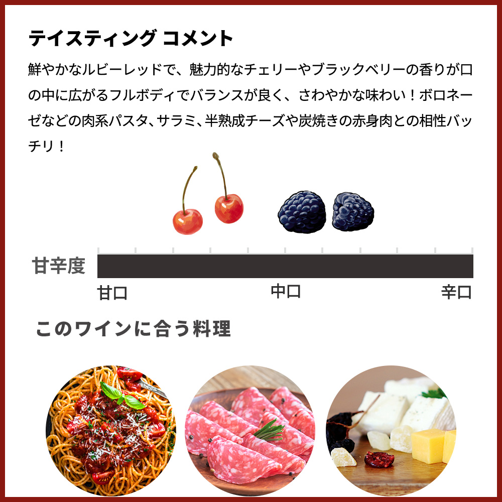 - ブドウ品種サンジョヴェーゼ種100%
