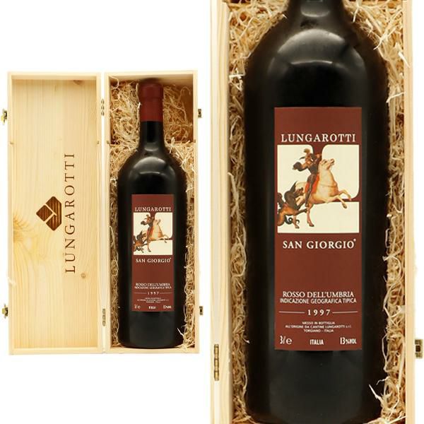 【豪華木箱入り】超特大ボトル・サン・ジョルジョ・ロッソ・デル・ウンブリア[1997]年・蔵出し品・ルンガロッティ社元詰・IGTロッソ・デッル・ウンブリア・イタリア赤ワインの最高峰・垂涎の1977年ファーストヴィンテージで最良の年のみ造られる”スーパーウンブリアン”・(明治屋正規品)・26年熟成品(ルンガロッティ社のセラー数ヶ月前の蔵出し品)・ビベンダ誌で最高賞の満点5房(5グラッポリ)獲得ワイン・ジェロボアム・大型3000ml・3L・豪華木箱入り