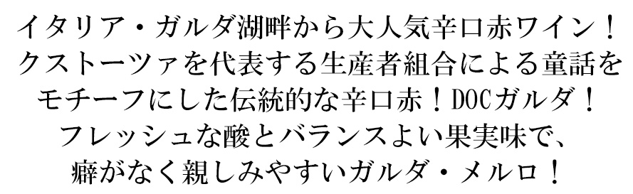 ガルダ・メルロ[2024]年・カンティーナ・ディ・クストーツァ・DOCガルダ(ブレーメンの音楽隊ラベル)・スクリューキャップ