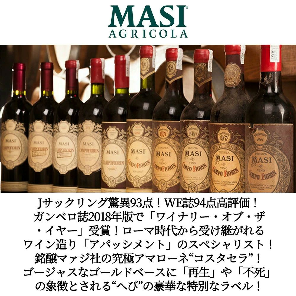 【豪華箱入】アマローネ・デッラ・ヴァルポリチェッラ・クラッシコ・コスタセラ(ヘビラベル)[2019]年・蔵出し品・オーク樽28-30ヶ月熟成・マァジ社・DOCGアマローネ・デッラ・ヴァルポリチェッラ・ジェームス・サックリング驚異の93点&ワインエンスージアスト誌94点&ワインスペクテーター誌90点・専用箱入・正規品