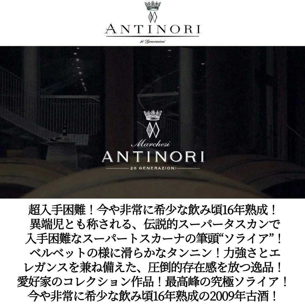 ソライア[2009]年・アンティノリ社・イタリア・トスカーナ(赤・フルボディ)・正規品・ワインエンスージアスト驚異の97点&ワインアドヴォケイト96+点&ヴィノス96点&ワインスペクテーター95点・飲み頃16年熟成古酒