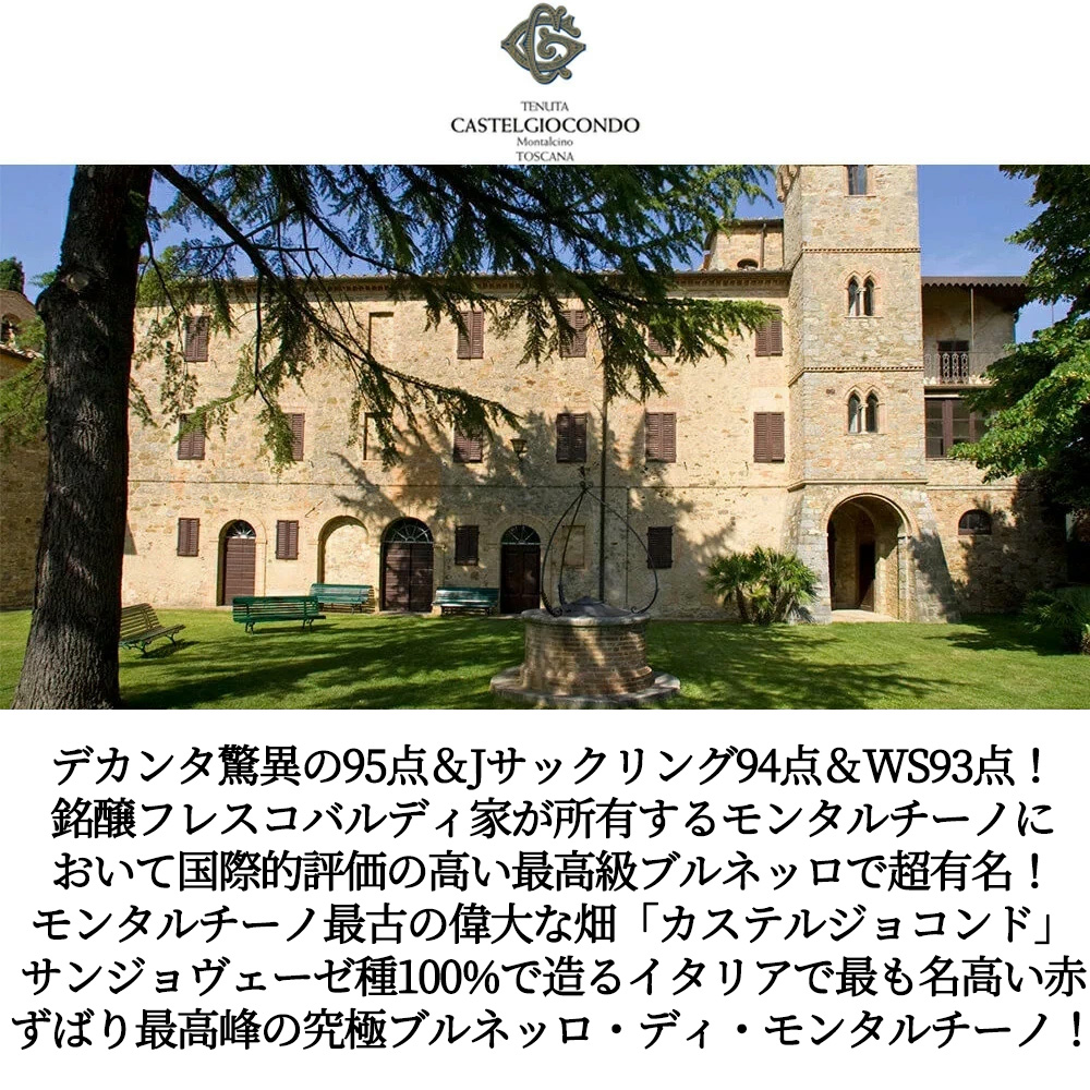 ブルネッロ・ディ・モンタルチーノ・カステルジョコンド[2020]年・蔵出し品・テヌータ・カステルジョコンド・エステート・フレスコバルディ社・ (マルケージ・デ・フレスコバルディ社)元詰・DOCGブルネッロ・ディ・モンタルチーノ・ 大樽熟成18ヶ月&バリック(小樽)で12ヶ月熟成&ステンレス6ヶ月&瓶熟成6ヶ月以上・デカンタ驚異の95点&ジェームス・サックリング94点&ワインスペクテーター93点&ワインエンスージアスト誌93点高評価・正規品