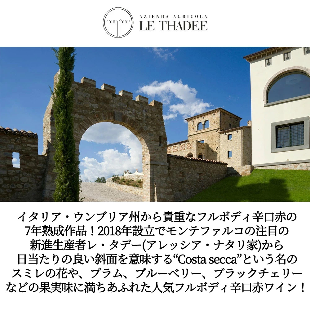 コスタセッカ・ウンブリア・ロッソ[2019]年・アジエンダ・アグリコーラ レ・タデー(オーナー・アレッシア ナタリ家)・IGTウンブリア・ロッソ・イタリア・ウンブリア州・フルボディ・辛口・14%・重厚ボトル 7年熟成作品