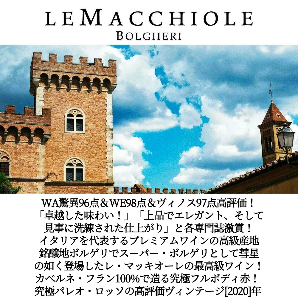 チョコレート、濃厚なカシス、エスプレッソと様々なアロマ!濃密でシルキーな舌触り、口に広がる果実味が豊かな素晴らしい品質を誇る、さすがマッキオーレと大納得の傑作赤ワイン!完全割り当ての究極パレオ・ロッソ!高評価ヴィンテージ[2020]年!究極フルボディ赤ワインが正規代理店輸入品で限定で少量入荷!