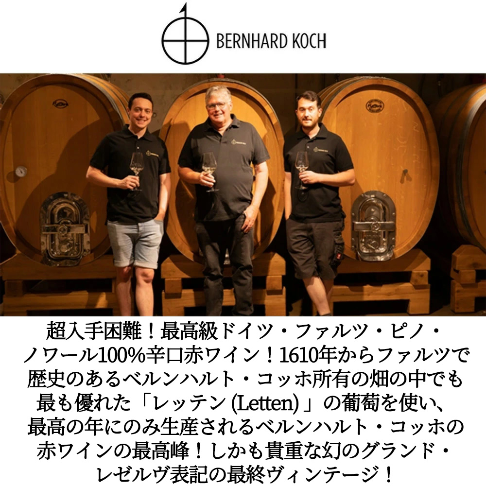 ベルンハルト・コッホが所有する畑の中でも最も優れた「レッテン (Letten) 」の葡萄を使い、最高の年にのみ生産されるベルンハルトコッホの赤ワインの最高峰!