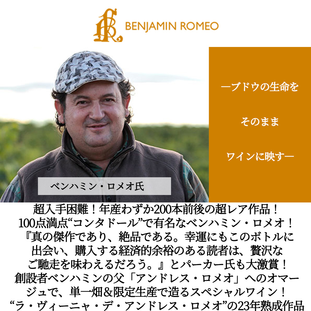 ラ・ヴィーニャ・デ・アンドレス・ロメオ[2003]年・ベンハミン・ロメオ(ボデガ・コンタドール)・超高級レアワイン・超スーパー・プレミアム・スパニッシュ!D.O.C.aリオハ・ワインアドヴォケイト驚異の95点&ヴィノス誌94点・23年熟成作品