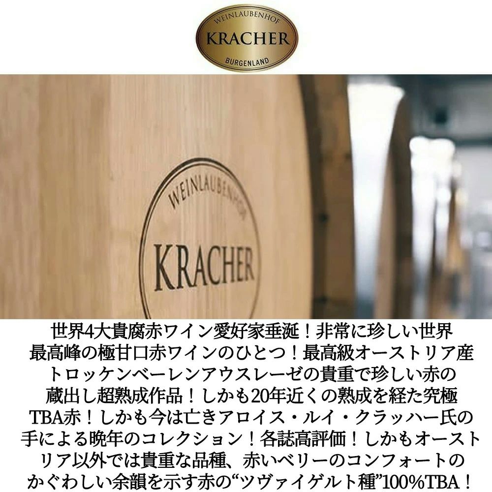 高級貴腐極甘口赤ワイン愛好家垂涎!世界4大貴腐ワイン愛好家垂涎!世界最高峰の極甘口赤ワインひとつ!最高級オーストリア産トロッケンベーレンアウスレーゼの蔵出し超熟成作品!しかも20年近くの熟成を経た究極TBA!しかも今は亡きアロイス・ルイ・クラッハー氏の手による晩年のコレクション!しかも珍しく貴重な黒ブドウ品種ツヴァイゲルト種100%の貴腐ワインの最高峰TBA (トロッケンベーレンアウスレーゼ) の赤ワイン!オーストリア以外では貴重な品種 (ツヴァイゲルト種) 100%!イギリスのインターナショナルワインチャレンジにおいてメーカーオブザイヤー「Sweet wine maker of the year」を8回も受賞するという快挙を成し遂げたゲオハルト・クラッハー自ら「黒葡萄であるツヴァイゲルトによるトロッケンベーレンアウスレーゼ (貴腐による極甘口赤ワイン) は、毎年生産できる訳では無い特別なものです!