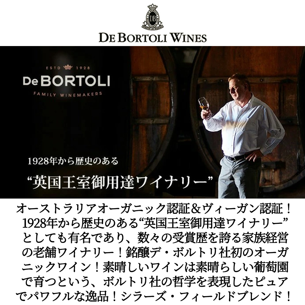 オーガニック・シラーズ・フィールドブレンド[2021]年・デ・ボルトリ社・オーストラリア・ニューサウスウェールズ州・オーストラリアオーガニック認証&ヴィーガン認証・インターナショナルオーガニックアワード2022にて赤・白同時金賞受賞