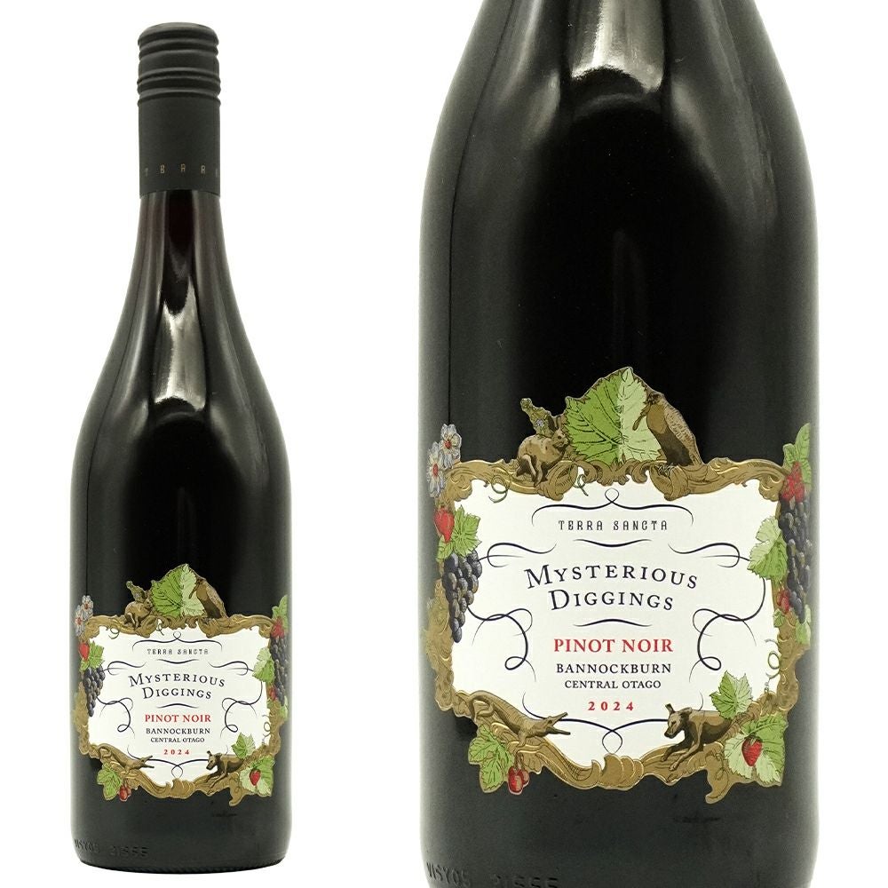 ミステリアス・ディギングス(単一畑100%)・ピノ・ノワール[2024]年・テラ・サンクタ社・自社畑元詰め・ニュージーランド・セントラル・オタゴ・GIバノックバーン産・自社畑100%(高標高&北向きの最高畑)のピノノワール種100%(ビオ=有機栽培)・オークのバリック樽8ヶ月熟成・2024年10月16日瓶詰め・ジェームス・サックリング驚異の98点&・“Top 100 World Wines 2025年度” 第4位獲得