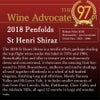ジェームス・ハリディ97点でコメントは「バロッサ・ヴァレー、マクラーレン・ヴェイル、ポート・リンカーン、ローブ、パッドサウェイ、クレア・ヴァレー、アデレード・ヒルズのブドウを使用。50+yoのタンクで12ヶ月熟成。セント・アンリは、ペンフォールドのヒーローの集合体の中でもユニークで愛される存在であり、2018年は特に特別なリリースとなる。完成された、スパイシーで艶やかな黒い果実の壮大な完全性がグラスの中で素晴らしい効果を発揮し、硬質でありながら優美で、粉のようにきめ細かいタンニンの繊細な骨格と対照をなし、長く続くラインと魅惑的な魅力のフィニッシュを運ぶ。この先何十年も、ゆっくりと果実味が開花していくのを傍観するのが楽しみだ。このラベルが象徴する全てを体現する愛らしいサン・アンリ。」!
