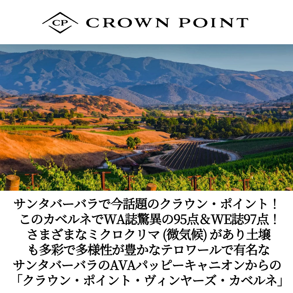 クラウン・ポイント・ヴィンヤーズ・カベルネ・ソーヴィニヨン[2016]年・カリフォルニア・サンタバーバラ・カウンティ・AVAパッピーキャニオン・オブ・サンタ・バーバラ・自社畑100%&225Lフレンチオーク樽(100%)で計26ヶ月熟成・醸造家シモン・フォリー・ワインアドヴォケイト誌驚異の95点(飲み頃 今-2037年)&ワインエンスージアスト誌驚異の97点