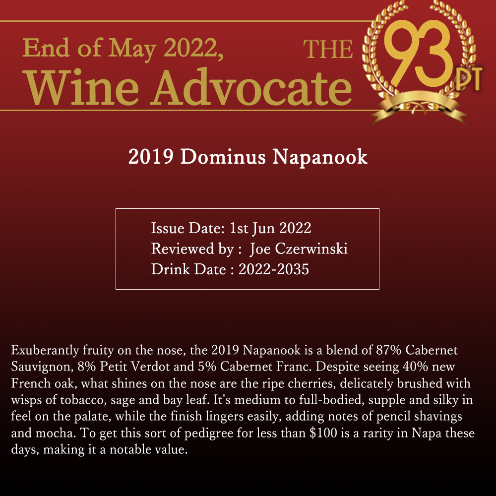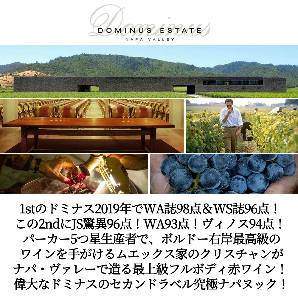 ナパヌック(ドミナス)[2019]年・蔵出し品・手摘み100%・ドミナス・エステート・(正規代理店輸入品)・クリスチャン・ムエックス・ナパ・ヴァレー・ジェームス・サックリング驚異の96点&ヴィノス誌94点獲得&ワインアドヴォケイト誌93点!