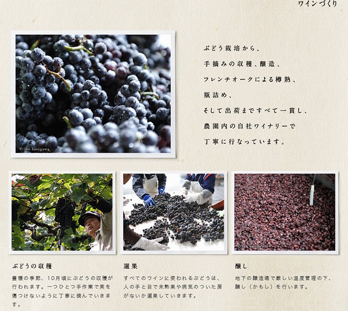 腐敗果がなくPH値も低い健全なぶどうであること、仕込み時の徹底した選果やワイナリー内の衛生管理、また、より自然な造りを心掛け、ワインメーカーが随時自身の目で確認し管理をするなど、手間の掛け方や造りのレベルはフラグシップのシャトー・タケダと遜色のないものです。赤い果実の香りとシャープな酸、滑らかなタンニンがとても心地良く、ぶどう本来の味わいが堪能できるワインです。ボトムレンジだからこそ、ワイナリーの真価が問われるものとし、力を注いでいる商品です。』