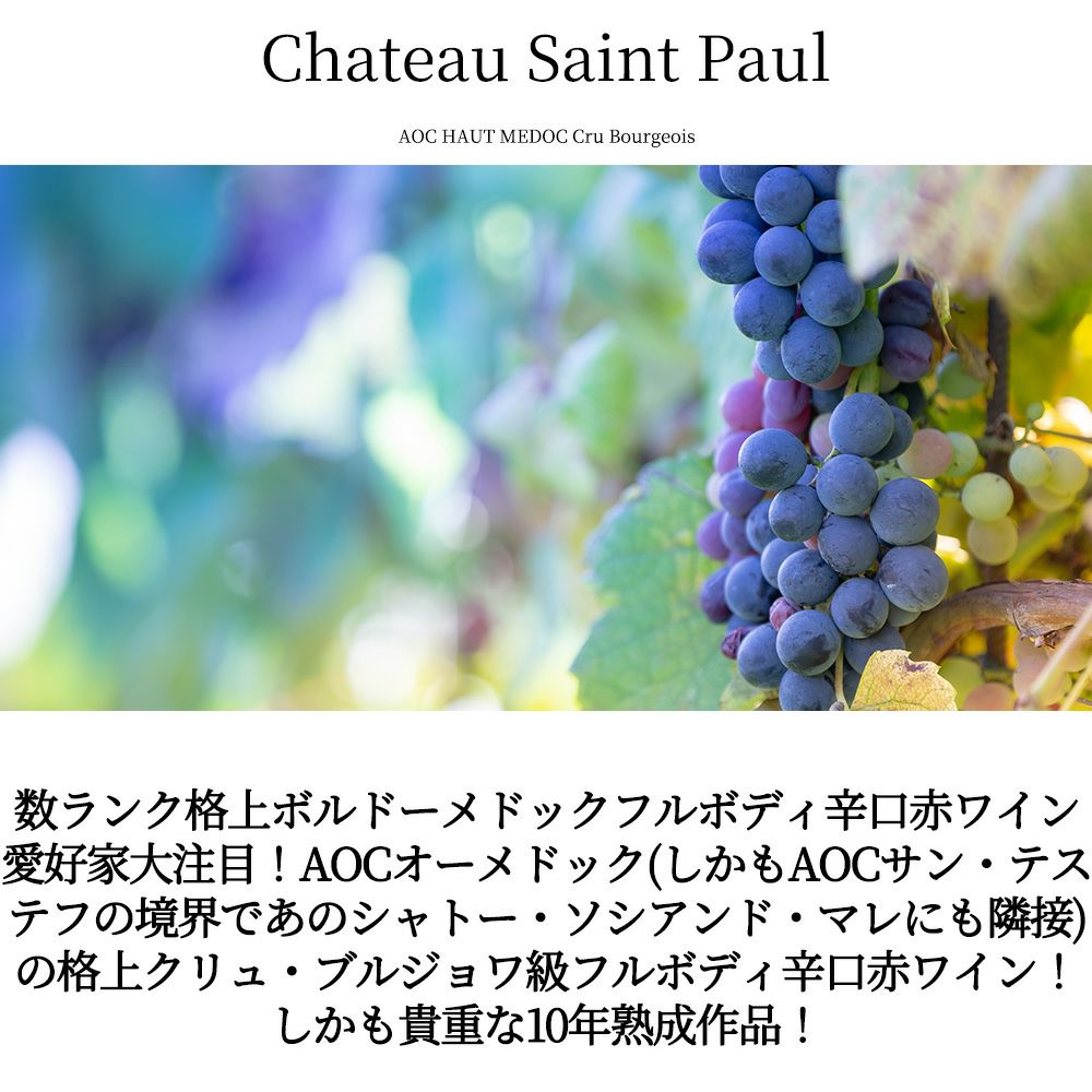 他の画像を見る シャトー サン ポール 2015シャトー元詰 (1979年以来、ラカーズ家が所有) AOC オーメドック クリュ ブルジョワ級 10年熟成作品Chateau Saint Paul 2015 AOC HAUT MEDOC Cru 赤ワイン フランス フルボディ 辛口 当店特別価格 ¥ 2,183 税込 在庫切れ 詳細を見る お気に入りに登録する