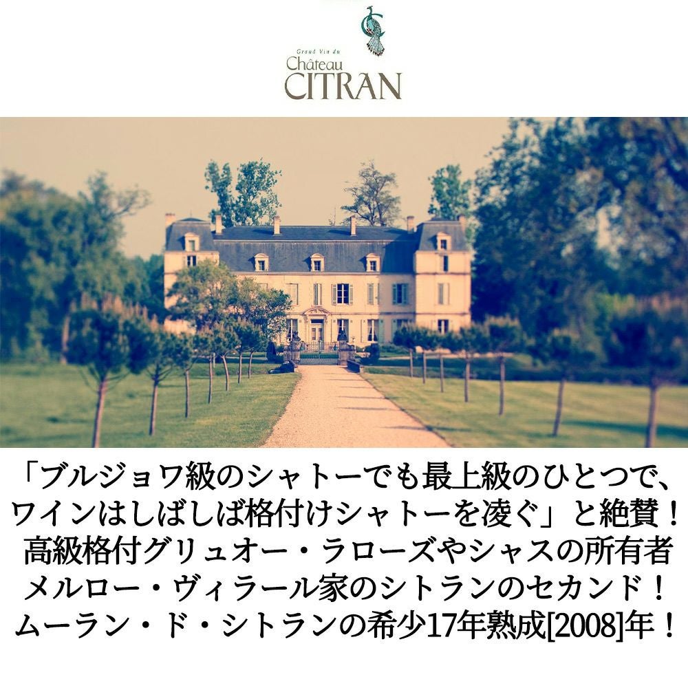 他の画像を見る ムーラン ド シトラン 2008 飲み頃17年熟成品 AOCオー メドック (クリュ ブルジョワ シューペリュールのシトランの2ndワイン) (メルロー家所有) Moulins de Citran 2008 AOC Haut-Medoc 赤ワイン フランス フルボディ 辛口 当店特別価格 ¥ 2,350 税込 カートに入れる お気に入りに登録する