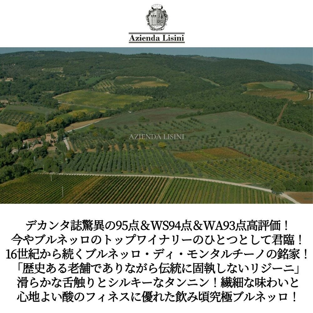 他の画像を見る ブルネッロ ディ モンタルチーノ 2018 手摘み100% オーク樽驚異の36ヶ月熟成+6ヶ月以上瓶熟成 アジエンダ アグリコーラ リジーニ元詰Brunello di Montalcino 2018 Az. Agr. LISINI DOCG 赤ワイン イタリア フルボディ 辛口 当店特別価格 ¥ 9,384 税込 カートに入れる お気に入りに登録する