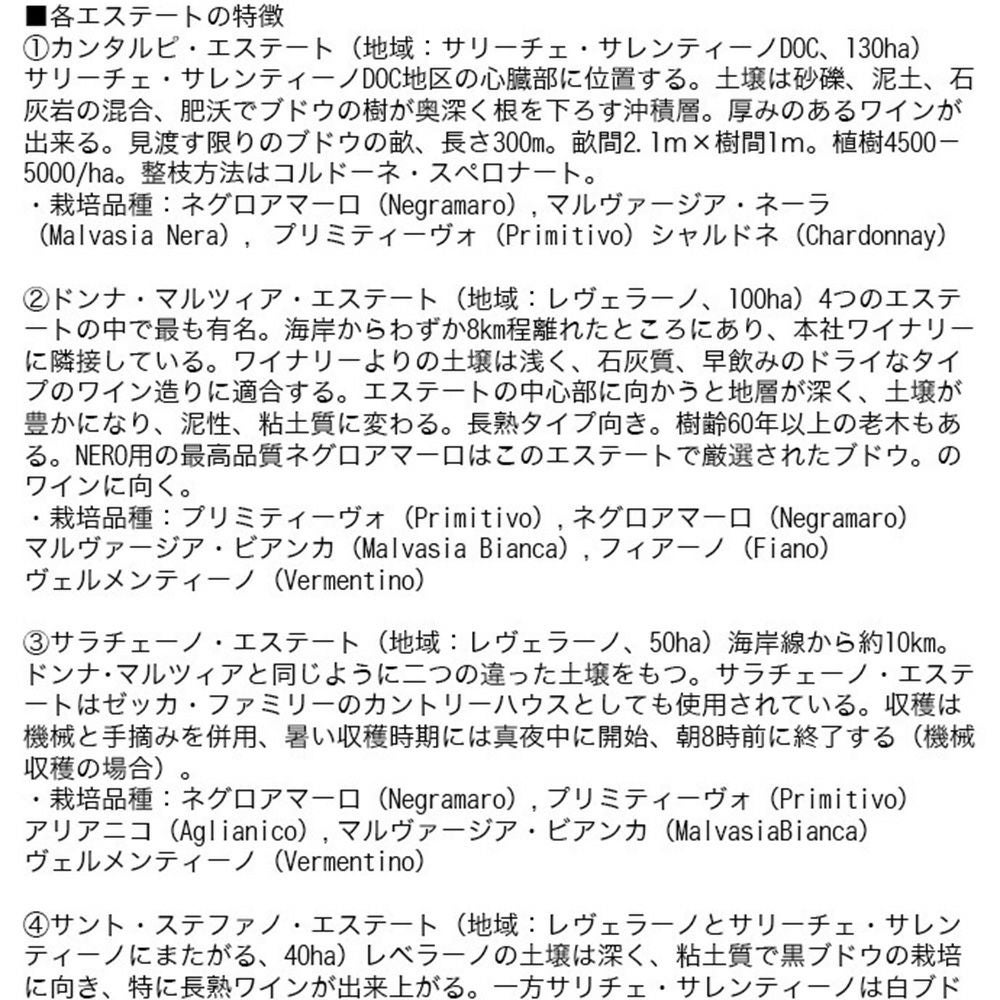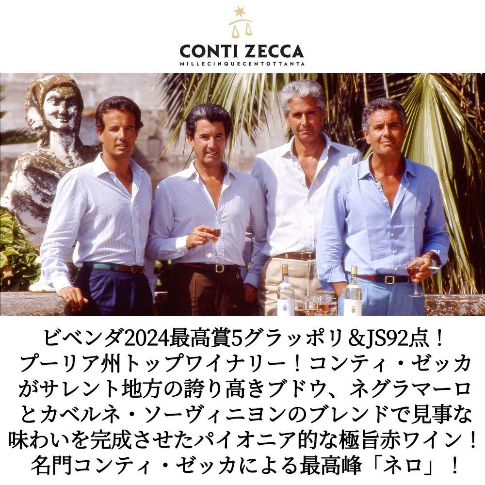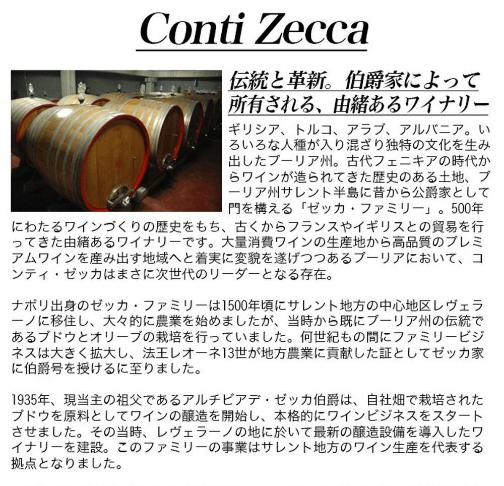 他の画像を見る ネロ 2020 オーク樽18ヶ月熟成+瓶熟成6ヶ月計24ヶ月 コンティ ゼッカ元詰 (プーリア州初のトレビッキエーリ10個獲得のスターワイナリー認定)NERO Conti Zecca 2020 IGT Rosso del salento 14% 赤ワイン イタリア フルボディ 辛口 当店特別価格 ¥ 4,963 税込 カートに入れる お気に入りに登録する