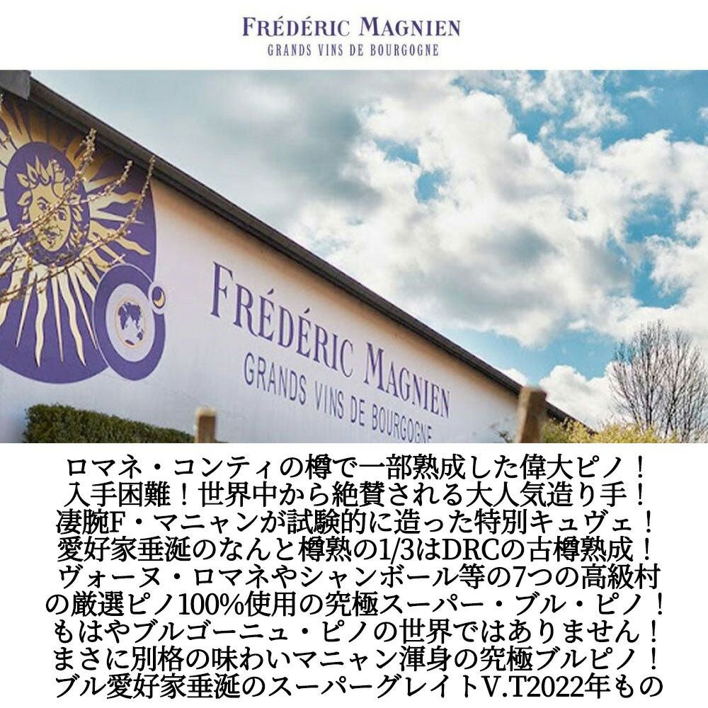 他の画像を見る ブルゴーニュ ピノ ノワール コート ドール フェリック 2022 セラー出し オーク樽熟成 フレデリック マニャン 正規品Bourgogne Pinot Noir Cote d’Or Feeric 2022 Frederic Magnien 赤ワイン フランス ミディアムボディ 辛口 当店特別価格 ¥ 4,577 税込 カートに入れる お気に入りに登録する