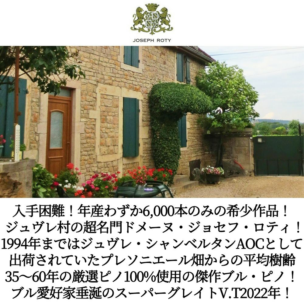 他の画像を見る ジュヴレ シャンベルタン 2022 蔵出し限定品 ドメーヌ ジョセフ ロティ家元詰 AOCジュヴレ シャンベルタン 正規品Gevrey Chambertin 2022 Domaine Joseph Roty 赤ワイン フランス フルボディ 辛口 当店特別価格 ¥ 13,794 税込 カートに入れる お気に入りに登録する