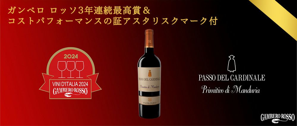 他の画像を見る パッソ デル カルディナーレ プリミティーヴォ ディ マンドゥーリア 2022 カンティーネ パオロレオ元詰 14%Passo del Cardinale Primitivo di Manduria 2022 Cantine Paololeo 赤ワイン イタリア フルボディ 辛口 当店特別価格 ¥ 2,340 税込 カートに入れる お気に入りに登録する