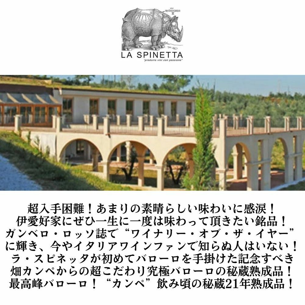 他の画像を見る バローロ カンペ ラ スピネッタ 2004 希少21年熟成品 蔵出し品 単一畑100% ラ スピネッタ社 DOCGバローロ 正規代理店輸入品Barolo Vigneto Campe La Spinetta 2004 LA SPINETTA 赤ワイン イタリア フルボディ 辛口 当店特別価格 ¥ 35,509 税込 カートに入れる お気に入りに登録する