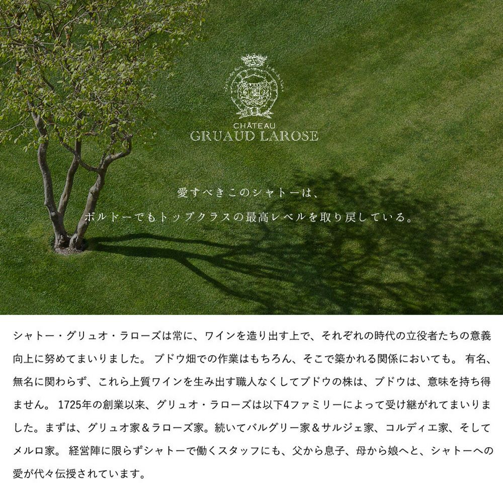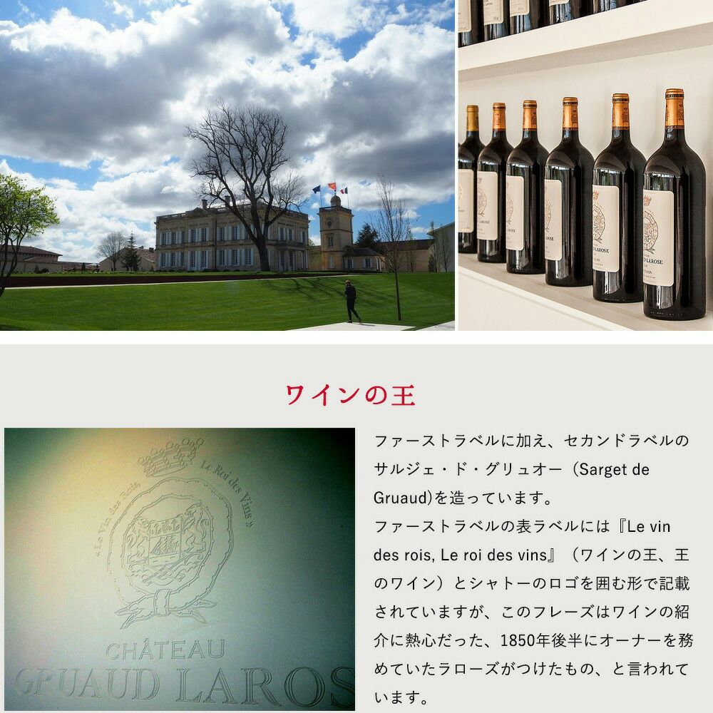他の画像を見る 【大型マグナムサイズ】シャトー グリュオー ラローズ 1999 メドック グラン クリュ クラッセ メドック格付第2級 AOC 26年熟成品Chateau Gruaud Larose 1999 AOC Saint-Julien Grand 赤ワイン フランス フルボディ 辛口 当店特別価格 ¥ 56,848 税込 カートに入れる お気に入りに登録する
