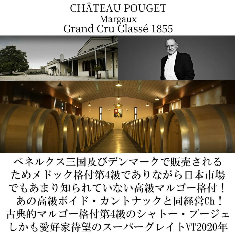 他の画像を見る シャトー プージェ 2020 AOCマルゴー メドック グラン クリュ クラッセ 公式格付第4級(オーナー リュシアン ギルメ家)Chateau Pouget 2020 赤ワイン フランス フルボディ 辛口 当店特別価格 ¥ 9,906 税込 カートに入れる お気に入りに登録する