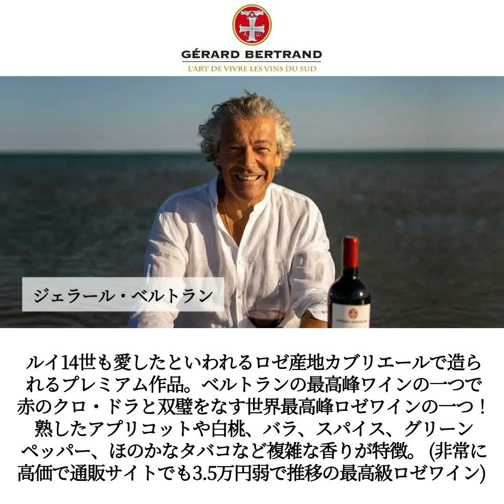 他の画像を見る クロ デュ タンプル 2021 ドメーヌ ジェラール ベルトラン 元詰 AOCラングドック ガブリエール オーガニック ファルスタッフ誌97点 Clos du Temple Rose 2021 Domaine Gerard Bertrand ロゼ フランス 辛口 自然派 当店特別価格 ¥ 28,363 税込 カートに入れる お気に入りに登録する